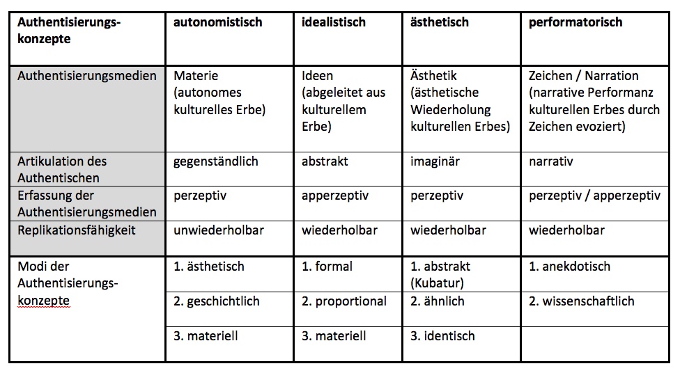 Daraus lassen sich vier Kategorien der Authentizitäten kulturellen Erbes ableiten.